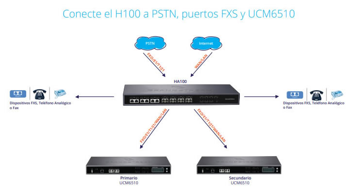 Los puertos de extensión analógicos (2 FXS ) tienen la capacidad de conmutar con los 2 puertos de enlaces analógicos (2 FXO) en caso de corte de energía (LifeLine Backup & Failover)